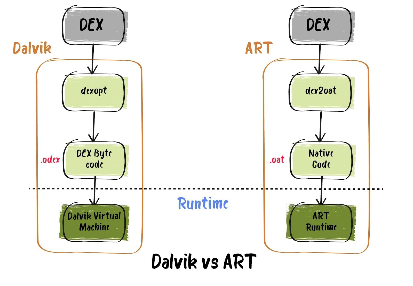 In this article, we will talk about the Android runtime environment. Notably, we promise to be brief and explain in short ART and Dalvik (DVM) differences in Android.