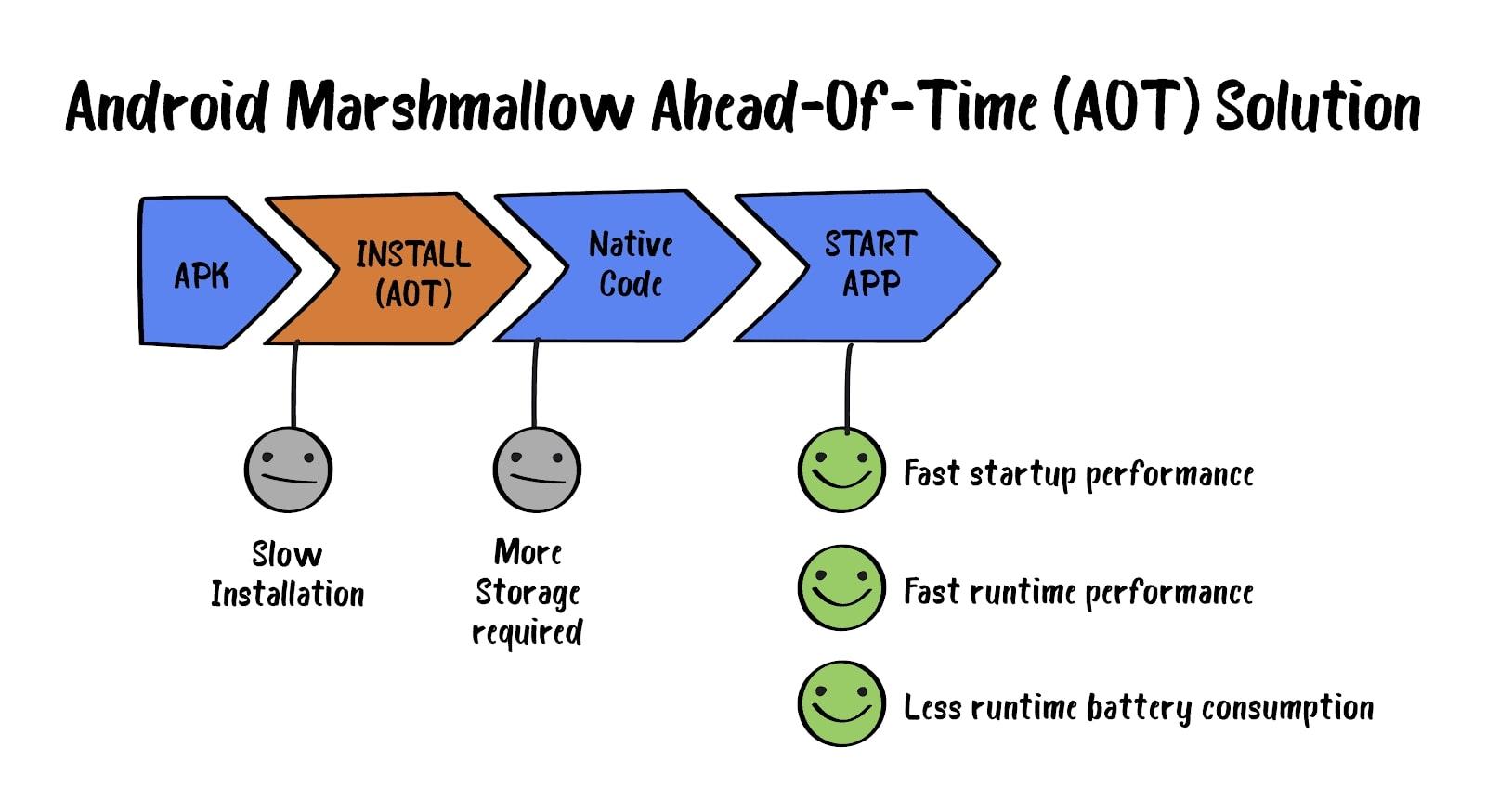 Since Android 7, the Android Runtime Environment includes a JIT compiler with code profiling. The JIT compiler complements the AOT compiler, improves runtime performance, saves disk space, and accelerates app and system updates.