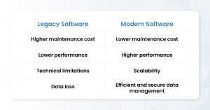 Efficient software is vital to daily business operations. Legacy applications, on the other hand, are systems that run on outdated technologies and slow down or even block processes within organizations. Once the outdated tech translates to underperformance, best case scenarios mean benchmarks aren’t met and inefficiencies proliferate; worst case, however, involves inability to compete or adapt, and that means extinction over time.