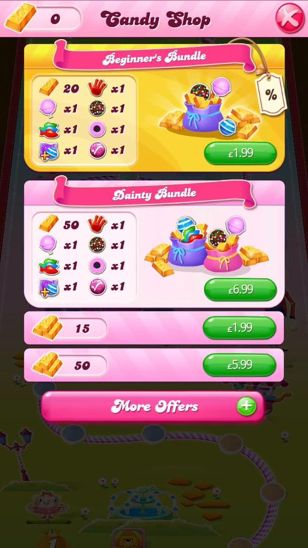 Example of in-app purchase in Candy Crush