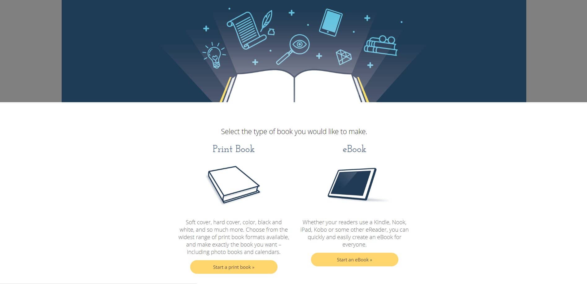 Screenshot from Lulu (see on https://www.lulu.com/). The user can create, publish and sell his/her book on the platform.