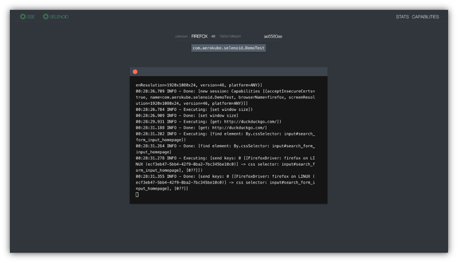 Even without utilizing the VNC (Virtual Network Computing) flag, Selenoid provides the ability to access the logs of the Docker container for each Selenium session. This standalone binary feature allows you to view comprehensive logs, offering valuable insights into the execution and behavior of the containerized environment during test execution. By enabling centralized log storage, you can efficiently analyze and monitor the logs, gaining valuable information and facilitating troubleshooting and debugging processes. With access to detailed logs and the ability to view the live browser screen, you can effectively investigate issues, improve test reliability, and enhance overall test quality. This comprehensive logging capability in Selenoid empowers you to identify and address any issues that may arise during test execution, ensuring smoother and more reliable testing processes.