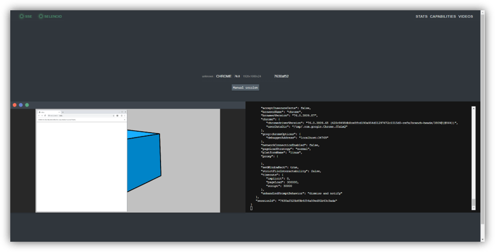 The video recorder image provided by Selenoid captures the entire test session, including the video screen size, providing a comprehensive visual representation of the test execution process. This feature is particularly useful for debugging purposes, allowing you to identify any issues or unexpected behavior during test execution.