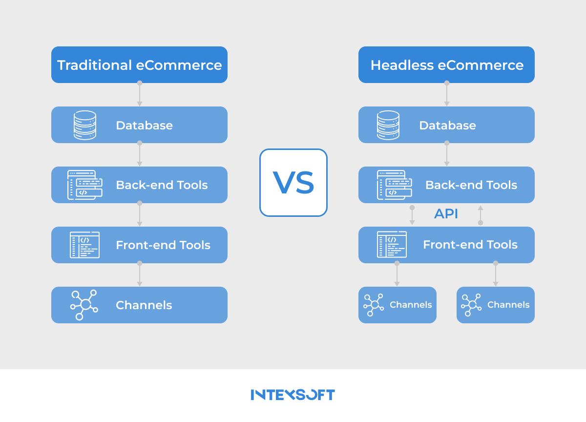 In a traditional e-commerce setup, the user interface (front end) and the business logic, databases, and server-side operations (back end) are tightly integrated. Headless commerce separates these components, freeing the front end from being tied to a specific back-end system.