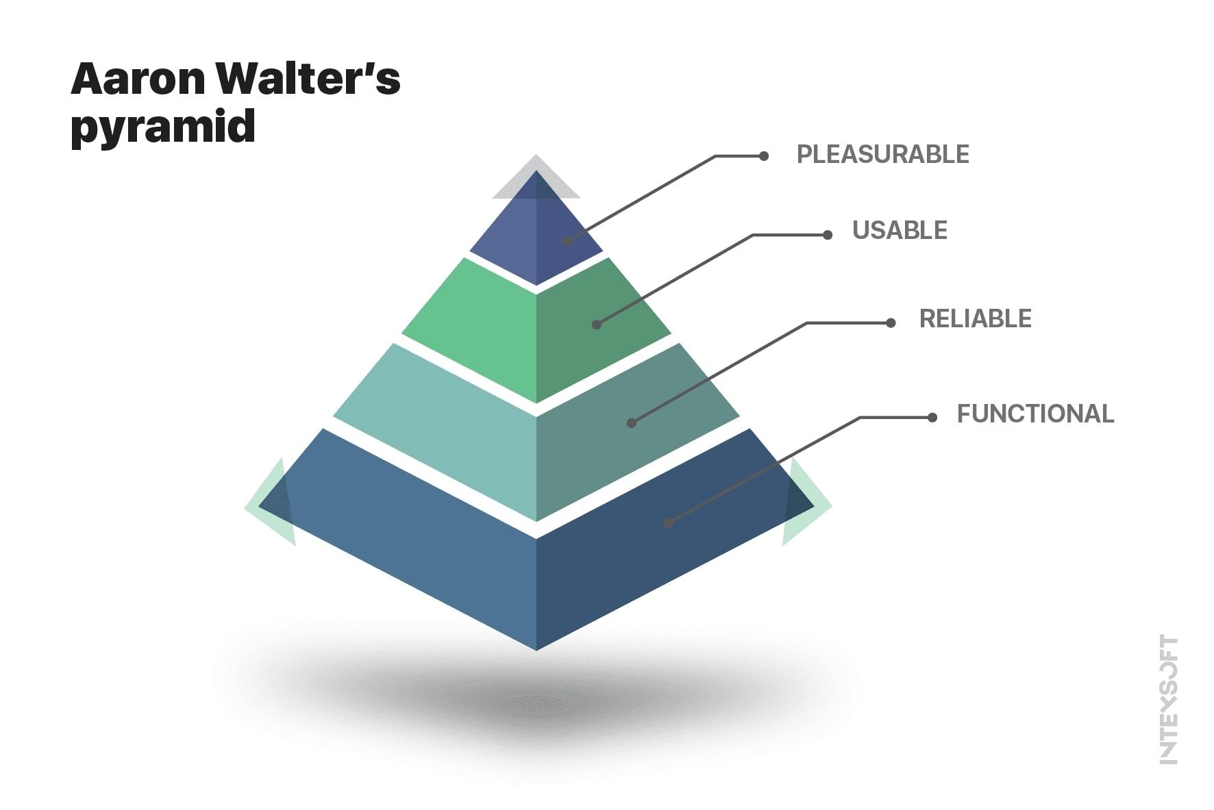 According to the Aaron Walter concept, a user has their own pyramid of needs – not to be confused with the Maslow pyramid, although one comes from the other. The basic need is functionality, next we have reliability (data security, if you will), then comes usability, and pleasure at the very top. And as in ordinary life: if all needs are satisfied, then everyone will be happy, and the product will definitely become popular.