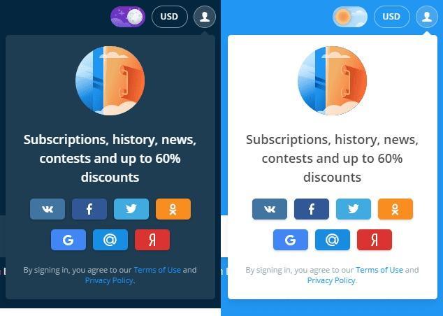 Dark/Light theme switcher on Aviasales website