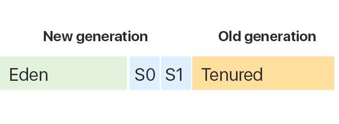 As already mentioned, the Heap memory is divided into 2 sections called Generations: New generation and Old generation.