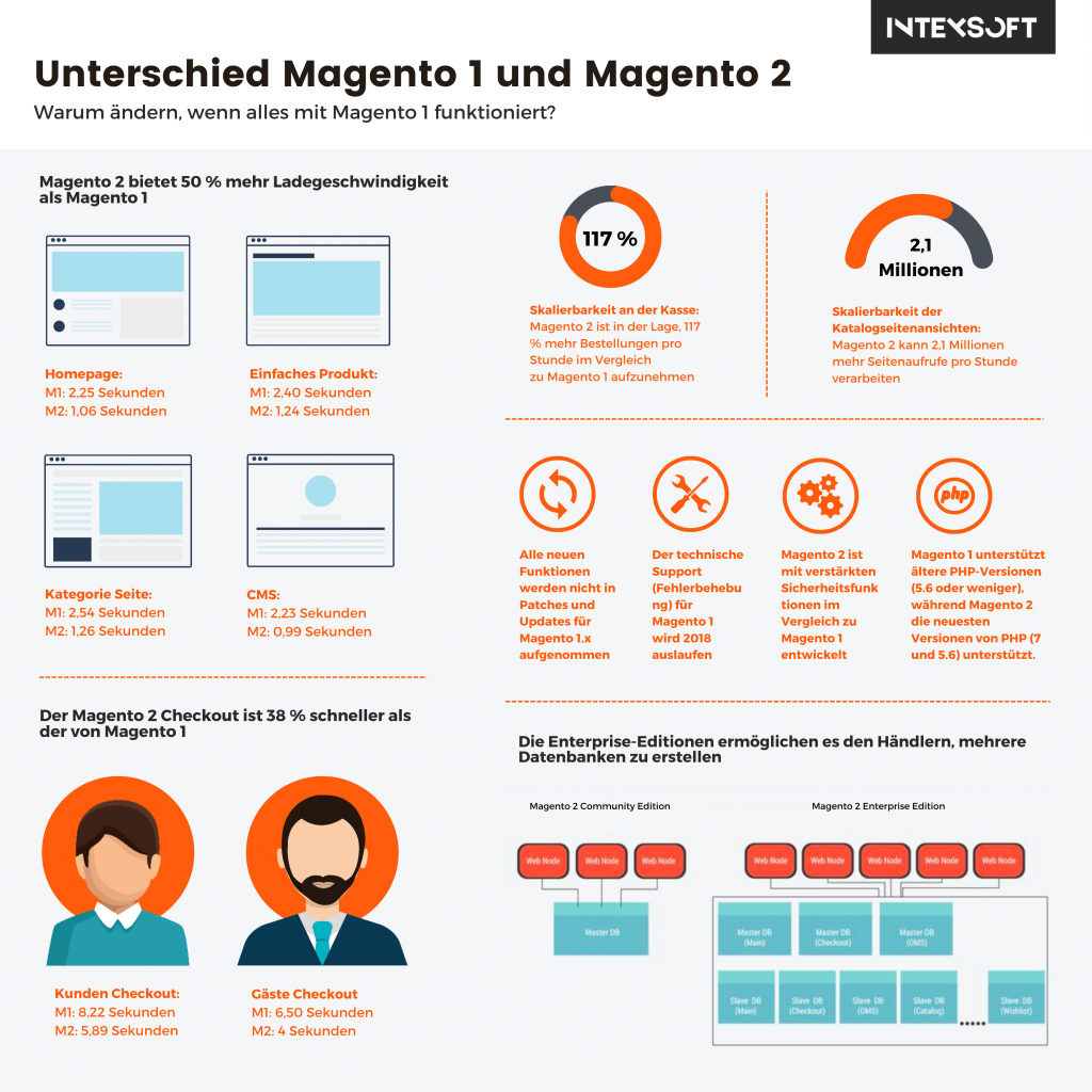 Magento 2, das 2015 veröffentlicht wurde, ist die aktualisierte Version von Magento 1, das 2008 begann. Die wichtigsten Vorteile von Magento 2 sind, dass es die neuesten PHP-Versionen unterstützt, um eine verbesserte Sicherheit und Website-Geschwindigkeit sicherzustellen.