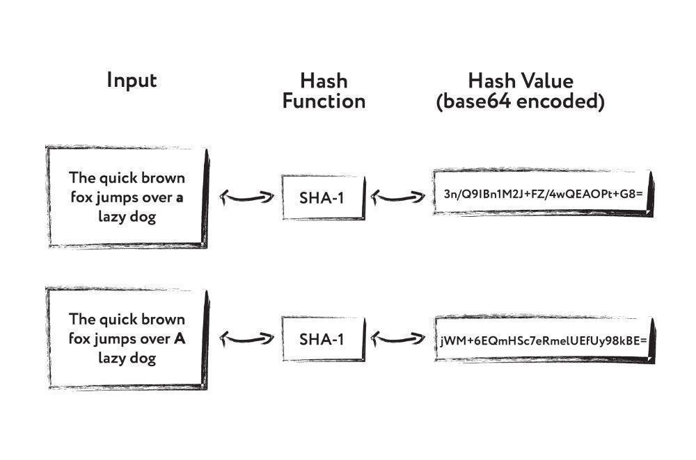 Hash functions have an avalanche effect. Let’s say we have two sets of input data: