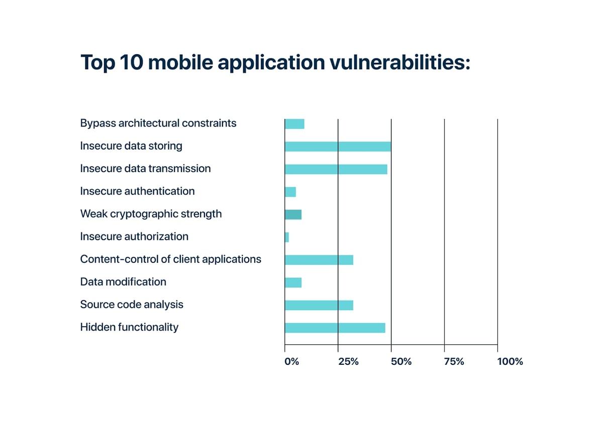 The figure below shows that these defects rank in the first three places as the most critical vulnerabilities in mobile applications. Let’s discuss them in more detail.